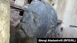 დაშლილი და დასაწყობებული ილია ჭავჭავაძის ძეგლი ლაგოდეხში