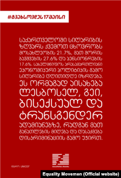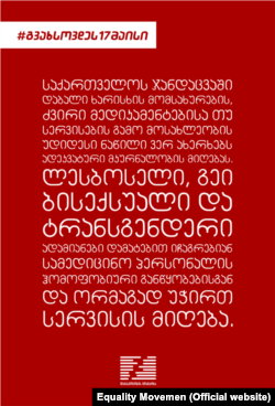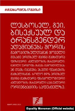 ჰომოფობიისა და ტრანსფობიის საწინააღმდეგო დღის აღნიშვნას „თანასწორობის მოძრაობა“ თბილისის მეტროპოლიტენის სამ სადგურსა და ავტობუსების სამ მოსაცდელზე ჰომოფობიის საწინააღმდეგო და თანასწორობის შინაარსის მესიჯების განთავსებით აპირებდა. ამისთვის მან სარეკლამო სივრცე ერთი თვის განმავლობაში აიღო იჯარით.