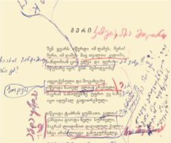 წითელი ფანქარი კოლაუ ნადირაძემ ავტორის სახელთანვე გამოიყენა. გალაკტიონი - აწერია წიგნს. ტაბიძე - მიუწერია წითლად კოლაუ ნადირაძეს.