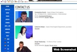 News Front-ის საიტზე უკრაინის ტერიტორიები - დონბასი, ლუგანსკი და ყირიმი - დამოუკიდებელ რესპუბლიკებად არის მოხსენიებული.