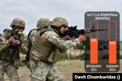 ევროკავშირისგან განსხვავებით, 2023 წლის იანვარში, NATO-ში წევრობის მომხრეთა რიცხვი (53%) 2021 წლის ნოემბერში იმავე კვლევის მონაცემთან (59%) შედარებით შემცირებული იყო.