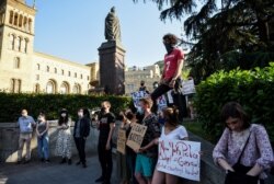 "ერთად დავგმოთ პოლიციური ძალადობა და უმცირესობების ჩაგვრა აშშ-ში!" - აცხადებდნენ ახალგაზრდების ჯგუფის წევრები, რომლებიც დღეს საპროტესტო აქციაზე შეიკრიბნენ რუსთაველის მეტროსთან.