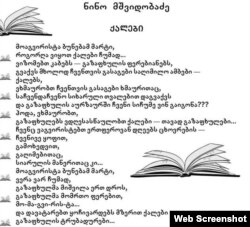 თავად პრიზიორი ნინო მშვიდობაძე კი მიიჩნევს, რომ პრიზი, 1000 ლარი და საჩუქრები, დამსახურებულად ეკუთვნოდა. ეს მის მიერ წარდგენილი ლექსებიდან ერთ-ერთია.