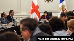 „პრეზიდენტს აღარ გააჩნია საკანონმდებლო ინიციატივის უფლება, მაგრამ ეს არ ნიშნავს, რომ თუ ჩვენ ჩავთვლით რომელიმე მიმართულებით არის საჭირო ცვლილებები [ამის მიტანა პარლამენტამდე არ შეგვიძლია] აქ არის ჩვენი საპარლამენტო მდივანი, რომლის უშუალო მოვალეობა არის ამ ინიციატივების მიტანა საკანონმდებლო ორგანომდე“, - განაცხადა სალომე ზურაბიშვილმა და პრეზიდენტის სასახლეში მიწვეული სტუმრები საპარლამენტო მდივანთან და პრეზიდენტის ადმინისტრაციის უფროსის მოადგილესთან სასაუბროდ დატოვა.