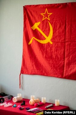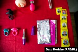 "გირჩის" ოფისის ახლადგახსნილ საროსკიპოში სექს-სათამაშოების და აქსესუარების გარდა "აი ისას" ქართული პრეზერვატივებიც არის გამოფენილი.