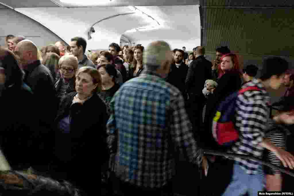 პიკის საათებში თბილისის მეტროპოლიტენი მგზავრთა ნაკადს ვერ აუდის. გადატვირთულობა მეტროში მგზავრებისთვის სერიოზული დისკომფორტია. თბილისის ვიცე-მერი ირაკლი ხმალაძე მეტროში არსებულ ხალხმრავლობაში პოზიტივებსაც ხედავს: 23 ოქტომბერს ვიცე-მერმა განაცხადა, რომ ხალხმრავლობა მეტროში ნიშნავს იმას, რომ ხალხი საზოგადოებრივი ტრანსპორტის აქტიურ მოხმარებას იწყებს, ქალაქში ნაკლები საცობი იქნება და ჰაერიც ნაკლებად დაბინძურდება. თბილისის ვიცე-მერი ფიქრობს, რომ მგზავრობას 2 საათიც რომ დასჭირდეს, ამ გარემოებების გამო ხალხმრავლობა მეტროში მისასალმებელია.