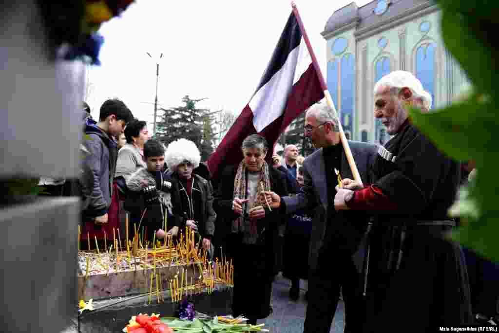 მოქალაქეები მემორიალთან სანთლებით და ყვავილებით მივიდნენ.