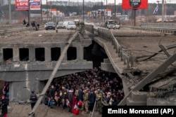დაბომბვის დროს დაღუპულთა ცხედრები. ადამიანები ცდილობდნენ დაეტოვებინათ ქალაქი ირპენი. 6 მარტი