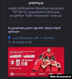 ისიც ითქვა, რომ შესაძლოა, ბილეთები მატჩის დაწყების წინ, სტადიონის შესასვლელთანაც გაყიდოს ვინმემ, თუმცა, ასეც რომ მოხდეს, გაცილებით ძვირი იქნება - ნაყიდ ფასში ბილეთს აღარავინ ყიდის.