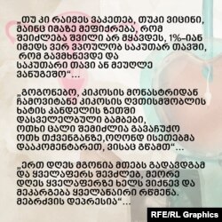 ათვალიერებ ბავშვების პაწია წინდებს, საწოვარებს, სამოსს, მაგრამ ყიდვას ვერ ბედავ, გეშინია, რომ მას შენ ვერ გამოიყენებ... შენს დიაგნოზს ფონად სულ ის შეგრძნება გასდევს, რომ რაღაცაში საკმარისი არ აღმოჩნდი“.