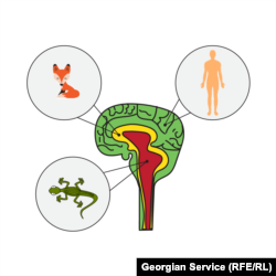ფსიქოლოგის თქმით, ადამიანის თავის ტვინი სამი შრისგან შედგება: რეპტილიური ტვინი, რომელიც ადამიანებს საერთო გვაქვს რეპტილიებთან, იმპულსებს, რეფლექსებს, ინსტინქტებს განაგებს; შუა ტვინი, ისევე როგორც ძუძუმწოვრებთან, ემოციებს აკონტროლებს, და ქერქი, რაც მხოლოდ ადამიანისთვის არის დამახასიათებელი.