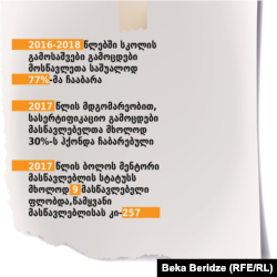 სასკოლო განათლების ხარისხის ამაღლებისადმი სახელმწიფოს ყურადღების ნაკლებობაზე ლაპარაკობს განათლების სპეციალისტი ნათია გორგაძეც, თუმცა აქვე აღნიშნავს იმასაც, რომ, ზრდის მიუხედავად, განათლების სექტორის დაფინანსება ძალიან მწირია. შესაბამისად, საკითხავია ისიც, თუ რამდენად სწორად ნაწილდება თანხები, რამდენად ყაირათიანად იხარჯება და რა კეთდება სასკოლო განათლების ხარისხის შესაფასებლად: