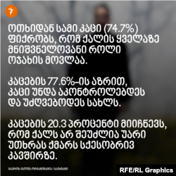 ეროვნული კვლევა ქალთა მიმართ ძალადობის შესახებ კიდევ ერთ ტენდენციას აჩვენებს - რას ფიქრობენ კაცები ქალების როლზე, თანასწორობასა და უფლებებზე.