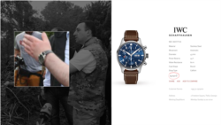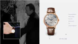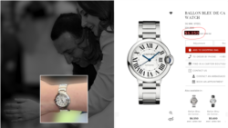 ამ ფოტოზე აღბეჭდილია ომეგა ქანსთელეიშენი, (Omega Constellation) საათი საფირის შუშით, მისი ციფერბლატი მოკირწყლულია 18 კარატიანი ოქროსგან დამზადებულ ბუდეში, ჩასმული 34 ცალი ბრილიანტით, აქვს ალიგატორის ტყავის სამაჯური. მისი ონლაინ ფასი8600 ევრო დაახლოებით 28 ათასი ლარია.
