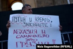 აქციის მონაწილეებს ეჭირათ ტრანსპარანტები წარწერით: „პუტინს ოკუპირებული აქვს საქართველოს 20%“, „დაგღალა პუტინმა? - დაისვენე საქართველოში!“, „პუტინო და კრემლო, დაიმახსოვრეთ: აფხაზეთი და სამაჩაბლო საქართველოა“.