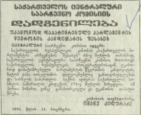 - ცესკოს მოქმედი თავმჯდომარის გადადგომა და მისი „საერთაშორისო გამჭვირვალობის“, „სამართლიანი არჩევნებისა“ და „საიას“ მიერ ნომინირებული კანდიდატით ჩანაცვლება