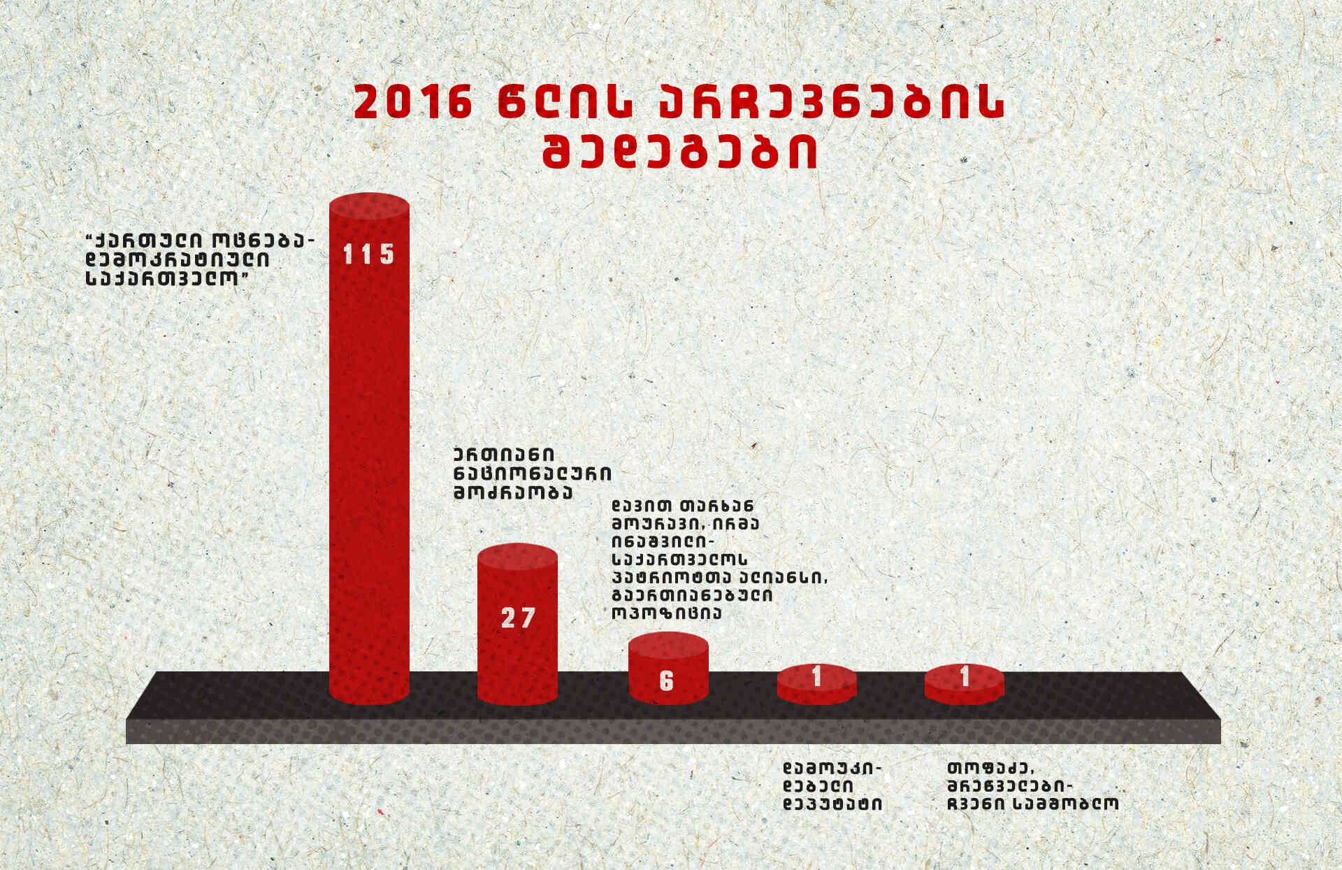 - საარჩევნო ბლოკი „დემოკრატიული საქართველო“ – 18,3% (37 მანდატი);