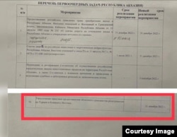 „D News აფხაზია“ აქვეყნებს დოკუმენტს სათაურით „პრიორიტეტული ამოცანების ნუსხა (აფხაზეთის რესპუბლიკა)“. მასში ნათქვამია „რუსეთის მოქალაქეებისთვის საცხოვრებლის შესყიდვის უფლების მინიჭების შესახებ“ და „ენერგეტიკის სფეროში რუსული ინვესტიციების განხორციელებაზე აკრძალვის მოხსნის შესახებ“. ბოლო, მე-16 პუნქტი ითვალისწინებს „რეპატრიანტებისთვის (თურქეთიდან და ახლო აღმოსავლეთიდან) აფხაზეთის მოქალაქეობის მინიჭების პროცედურის გამკაცრებას“.