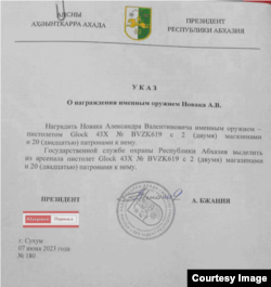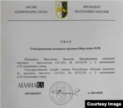 დამოუკიდებელი ჟურნალისტები წერდნენ, რომ სასაჩუქრე იარაღი ერთგვარი სიმბოლოა, რომელიც ადამიანს ქვეყნის წინაშე დამსახურებისათვის საზეიმოდ უნდა გადაეცეს. მაგრამ, ნაპოვნი დოკუმენტების მიხედვით, ეს საჩუქრები ქრთამის სახით ურიგდებოდათ ადგილობრივ ჩინოვნიკებსა და იმ ცნობილ ადამიანებსა და რუს მუსიკოსებს, რომლებიც არცთუ მცირე თანხის საფასურად აფხაზეთში კონცერტის გამართვას თანხმდებოდნენ.