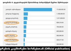 - ევროპული საქართველოს 21 პარლამენტარიდან 10 პარტიის შემომწირველიც არის.
