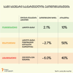 ამ ყველაზე პესიმისტური პროგნოზის გამართლების შემთხვევაში, რომლის ალბათობა საკმაოდ მაღალი - 40 პროცენტია, ქვეყნის წლიური ეკონომიკური ვარდნა 6 პროცენტს მიაღწევს.