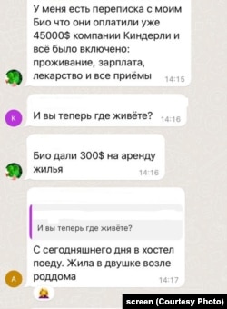 „ერთ-ერთი პირველი ვიყავი, ვინც ამ ჰოსტელში შემოასახლეს. ვიცი, რომ ბიოლოგიურ მშობლებს კომპანიისთვის თანხა უკვე ჩარიცხული აქვთ, თუმცა ჩვენამდე არაფერი მოდის“, - დამტვრეული რუსულით ლაპარაკობს ქალი.