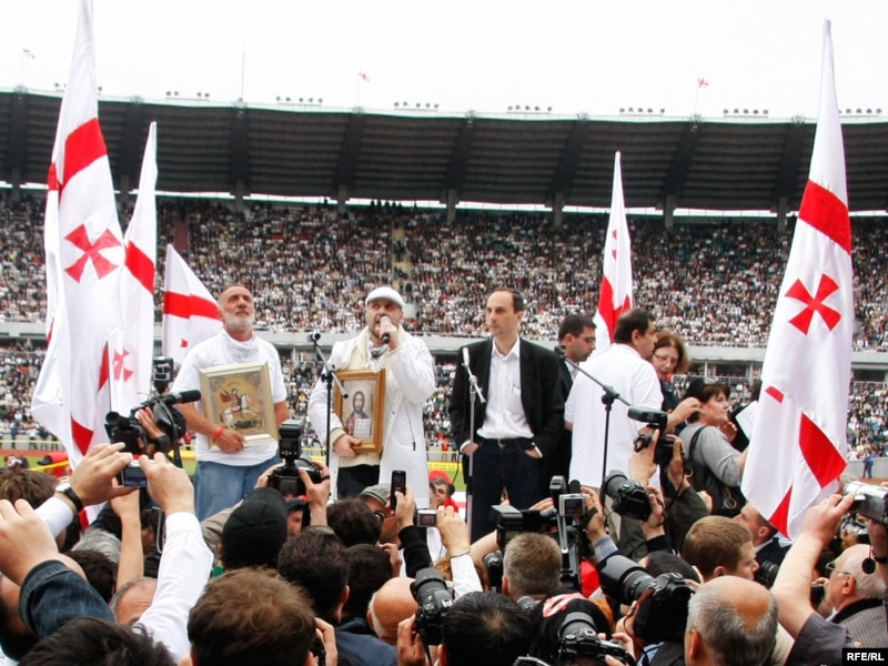 სტადიონიდან ხალხი, ოპოზიციის ლიდერებთან ერთად, სამების ტაძრისაკენ დაიძრა. ”უცნობმა”-გია გაჩეჩილაძემ, რომელიც დასავლეთ საქართველოდან შეუერთდა აქციას, ხალხს უთხრა, რომ ახლა რჩევა უახლოესი მოქმედების შესახებ პატრიარქს უნდა ჰკითხონ.