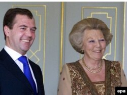 დმიტრი მედვედევი და ნიდერლანდის დედოფალი ბეატრისი 19 ივნისს, ჰააგაში