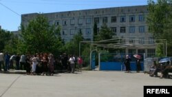 სკოლის ეზოს გარეთ, თაკარა მზის , გამოსაცდელთა უამრავ გულშემატკივარს მოეყარა თავი.