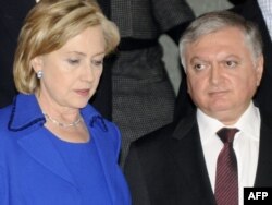 აშშ-ის სახელმწიფო მდივანი ჰილარი კლინტონი და სომხეთის საგარეო საქმეთა მინისტრი ედვარდ ნალბანდიანი ციურიხის უნივერსიტეტში