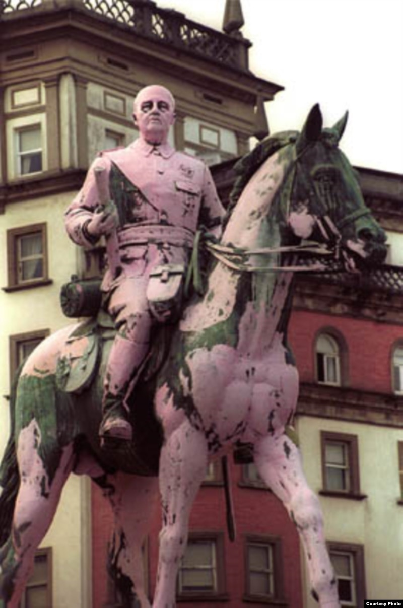 ვარდისფრად შეღებილი ფრანკოს ძეგლი ფეროლში