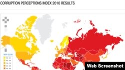”საერთაშორისო გამჭვირვალობის” მიერ გამოქვეყნებული ყოველწლიური ანგარიშის - ”კორუფციის აღქმის ინდექსის” - მიხედვით, 2010 წელს საქართველომ მაქსიმალური 10 ქულიდან 3,8 ქულა დაიმსახურა და, როგორც ვთქვით, 178 ქვეყნის ნუსხაში შარშანდელთან შედარებით 2 ადგილით უკან დაიხია. ეს მაშინ, როდესაც მანამდე, 2004 წლიდან მოყოლებული, ამ პროცესში საქართველო ყოველწლიურად საშუალოდ 0,5-ქულიან წინსვლას ახერხებდა. აქვე ვთქვათ, რომ ”კორუფციის აღქმის ინდექსი” შიდაპოლიტიკურ და საჯარო სექტორში არსებული კორუფციის საზომს წარმოადგენს და მით უფრო არაკორუმპირებულად მიიჩნევა ქვეყანა, რაც უფრო მაღალია მისთვის მინიჭებული ქულა. ინდექსი საერთაშორისო ორგანიზაციებისა და საკონსულტაციო ჯგუფების კვლევებს ეყრდნობა.