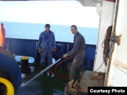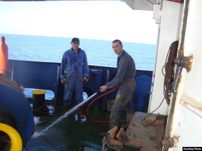 ზურაბ გურალია (მარცხნივ) და გიორგი ყურაშვილი "ვასილიოს N"-ის გემბანზე