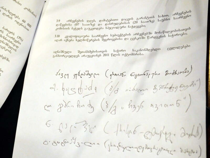საარჩევნო გარემოს გაუმჯობესების მიზნით განსახორციელებელ ცვლილებებსა და ღონისძიებებზე ათპუნქტიან შეთანხმებას 27 ივნისს პირველმა ხელი პარლამენტის იურიდიული კომიტეტის თავმჯდომარემ პავლე კუბლაშვილმა მოაწერა და ფურცელზე სუფთა ადგილი ოპოზიციური პარტიებისათვის დატოვა.