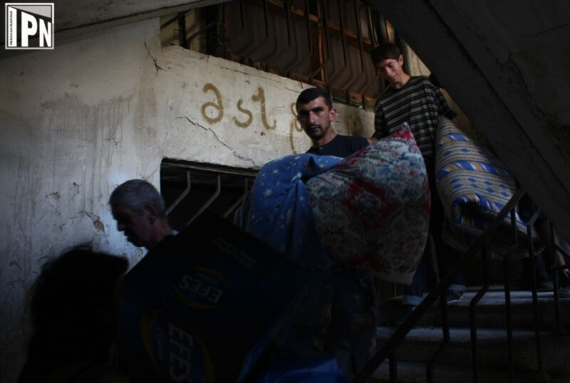 ვაჟა-ფშაველას 25-ში მდებარე სასტუმრო „აფხაზეთს“, სადაც ცხინვალის რეგიონიდან დევნილი 270-მდე ოჯახი ცხოვრობს, სატვირთო მანქანები დილაადრიან მიადგნენ. დევნილების ნაწილი არ დაელოდა 15 აგვისტოს, ანუ მათთვის მიცემული ვადის გასვლას და იძულებითი გამოსახლების წინ ავეჯისა და საყოფაცხოვრებო ნივთების გატანა დაიწყო. შენობის დატოვების გადაწყვეტილება მიიღო 36 წლის ნელი ბაბუცაძემაც.