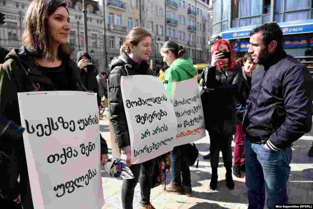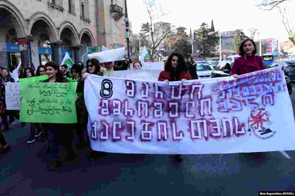 ქალთა დღესთან დაკავშირებით აქტივისტებმა პირველი აქცია თავისუფლების მეტროსთან გამართეს. ისინი სექსუალური ძალადობის წინააღმდეგ გამოვიდნენ. შემდეგ უფლებადამცველებმა მარჯანიშვილის მეტროსკენ გადაინაცვლეს, ბოლოს კი რუსთაველზე შეუერთდნენ მსვლელობას. რუსთაველზე შეკრებილების მთავარი მოთხოვნა კი ქალების შრომითი უფლებების დაცვა იყო.
