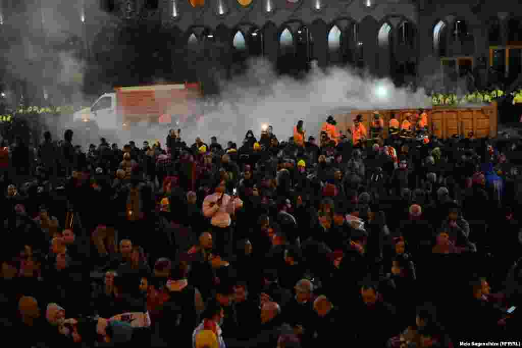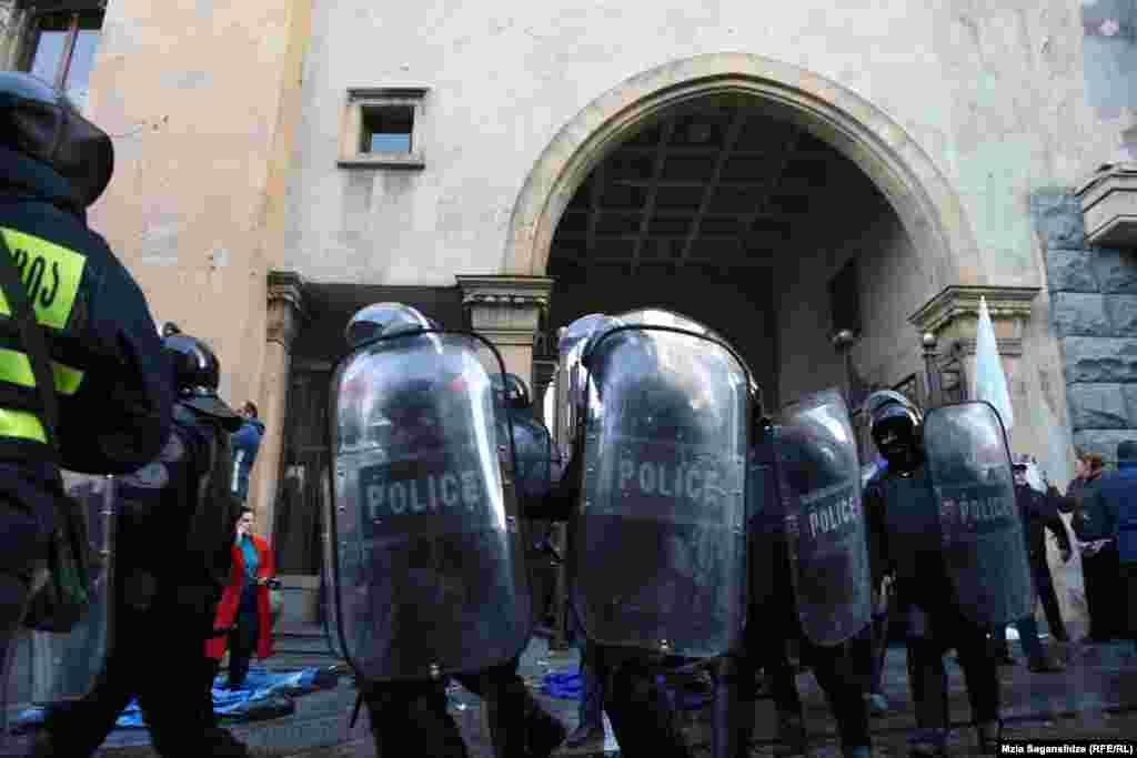 სამართალდამცველებმა პარლამენტის წინ, გზის სავალი ნაწილი კარვებისგან გაათავისუფლეს, რუსთაველის გამზირი კი დასუფთავების სამსახურის წარმომადგენლებმა დაალაგეს.