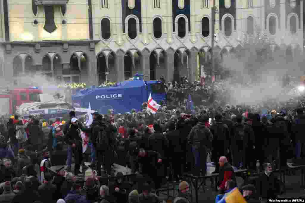 სპეცრაზმმა წყლის ჭავლით დაშალა პიკეტი პარლამენტთან. შსს ხმოვანი სიგნალით აფრთხილებდა აქციის მონაწილეებს, დაეტოვებინათ ტერიტორია.