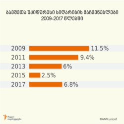 საქართველოს სტატისტიკის ეროვნული სამსახურის 2018 წლის მონაცემების თანახმად, სიღარიბის აბსოლუტურ ზღვარს ქვევით მყოფი მოსახლეობის წილი 20,1 პროცენტია. აქედან 0-დან 17 წლამდე ასაკის ადამიანების 25.5 % ცხოვრობს აბსოლუტურ სიღარიბეში - ეს მაჩვენებელი პრაქტიკულად ემთხვევა "იუნისეფის" მონაცემს ზოგადი სიღარიბის შესახებ.