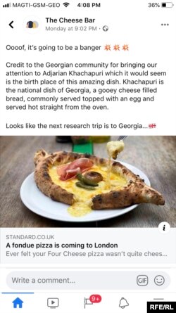 ლონდონის პიცერიამ „Pizza Pilgrims" ადგილობრივ ყველის რესტორანთან ერთად მოამზადა აჭარული ხაჭაპური და როგორც პიცა, ისე შესთავაზა მომხმარებელს. 4 თებერვალს, ადგილობრივმა გამოცემამ გამოაქვეყნა სტატია, სადაც საუბარია, რომ ამ კერძის ავტორებისთვის, ინსპირაცია ალპური „La Fonduta“ გახდა.