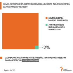 საქართველოში აღირიცხა მხოლოდ 95 იმპორტირებული შემთხვევა. კორონავირუსი ყველაზე მეტად შეეხო ქვემო ქართლის რეგიონს. დიდ კლასტერებში ყველაზე საყურადღებო იყო ბოლნისის კლასტერი, რაც მუნიციპალიტეტის მკაცრი იზოლაციის საფუძველი გახდა.
