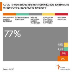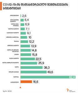 კვლევის პერიოდში საქართველოში ჯანდაცვის სფეროს წარმომადგენლების კოვიდ-19–ით დაინფიცირება დადასტურებული შემთხვევების 13%-ში აღირიცხა.