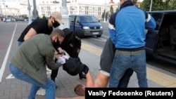 მილიციამ დააკავა ათამდე ჟურნალისტი, მათ შორის, რადიო „თავისუფლების“ ბელარუსული სამსახურის ორი თანამშრომელი, რომლებიც აქციებს აშუქებდნენ.
