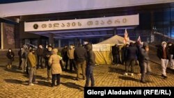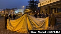 თელავის თეატრის წინ, სამოქალაქო აქტივისტებმა, ოპოზიციური პარტიების ნაწილმა და მათმა მხარდამჭერებმა დიდი ზომის კარავი გაშალეს.