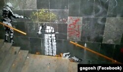 “ხმების ქურდი. რუსი ოლიგარქი!” - ამ წარწერის გამო 1 დეკემბერს ორი აქტივისტი 1000 ლარით დააჯარიმეს. მათ პოლიტიკური მესიჯი ნაცრისფერი საღებავით და დიდი ზომის ასოებით მთაწმინდისკენ მიმავალ გზაზე, საავტომობილო გვირაბის ბეტონის კედელს შიგნიდან მიაწერეს. გვირაბის თავზე “ქართული ოცნების” ლიდერის, ბიძინა ივანიშვილის “შუშის სასახლეა”.