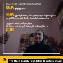 30.9% ისეთი პროფესიისაა, დღეს რომ ამ საქმეს ვერაფერში გამოიყენებენ. 43.6% ვერ მუშაობს განსაკუთრებული საჭიროებებისა თუ ჯანმრთელობის მძიმე მდგომარეობის გამო.