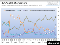 კვლევის მიხედვით, თუკი 2019 წლის ბოლოს "ქართული ოცნების" მხარდაჭერა 19 პროცენტი იყო, ახლა ეს მაჩვენებელი 31-მდეა გაზრდილი. "ნაციონალური მოძრაობის" შემთხვევაში მხარდაჭერის მაჩვენებელი 13 პროცენტიდან 5 პროცენტამდეა შემცირებული. ბოლო კვლევაში, ისევე, როგორც სხვა წინა კვლევებშიც, ყველაზე მაღალი მაჩვენებელი აქვს პასუხს "არ ვიცი, არცერთი პარტია, უარი პასუხზე".