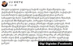 გიგი გიგიაძე მიესალმება ივერი მელაშვილისა და ნატალია ილიჩოვას გათავისუფლებას