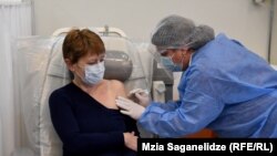 ერთ-ერთი პირველი, ვინც დღეს COVID-ვაქცინით აიცრა, დაავადებათა კონტროლის ცენტრის 73 წლის თანამშრომელი, თამარ გიორგაძეა: