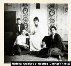 ეს ფოტო კი სწორედ საფრანგეთის დედაქალაქშია გადაღებული, 1920-1921 წლებია. დიმიტრი შევარდნაძე, მიხეილ ჭიაურელი, ქეთევან მაღალაშვილი და ლადო გუდიაშვილი.